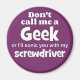 Não me chame de Geek, ou eu te ligo com minha chave de fenda. Que as pessoas à sua volta saibam em que é que se meteram e que estão prontas a defendê-la.