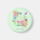 Imã Chaveiro Verde de Monograma Floral de Friso de Cos