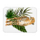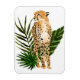 Cheetah Outlook I de Annie Warren. Um guepardo no estilo aquarela continua com folhas verdes tropicais no fundo. | 164730Z