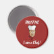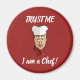 Cabeça de chef com chapéu, corcunda vermelha e texto personalizado.