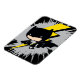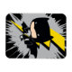 Chibi Batman faz um chute voso contra um raio de fundo.