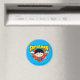 Veja Chibi Superman voando nas nuvens com seu nome super-herói sobrevoando e forma vermelha de escudo de bolinhas atrás dele.