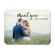 Obrigado de fotos de casamento da tipografia da Trendy, seu imã. Moderno e na moda, este design personalizado apresenta o texto móvel "obrigado você" em letras grandes e elegantes, um campo de texto editável para os nomes dos casais e um espaço reservado para uma foto de sangria de cheio. Personalize facilmente este design para corresponder ao seu estilo clicando em "Personalizar" para ir para a ferramenta design e adicionar o seu próprio texto ou detalhes personalizados.