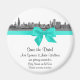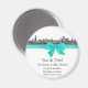 Chicago Skyline Etch Look 01 Invitation Suite Aqua Ribbon - Imã salve a data Elegante, chic e acessórios personalizáveis com uma vista gravada a preto e branco do horizonte de Chicago, Illinois. Ele também apresenta um arco de aspecto de aqua turquesa. Este produto faz parte de um conjunto de designs correspondentes que são facilmente personalizáveis para muitas ocasiões e eventos. Se você precisar de placas RSVP separadas, Obrigado, notas, carimbos, ímanes, etiquetas de garrafas, menus, cartões de escolta, programas de eventos, etiquetas de favorecimento ou outros acessórios, por favor, verifique nossas outras listas. Se você não vir um produto correspondente ao qual você está interessado, ou gostaria de ver esse design em cores diferentes ou com fotos diferentes do NYCisMyMuse que você vê em nossa loja, entre em contato conosco e ficaremos felizes em acomodá-lo. Observe que esta é uma design gráfica / foto que é transferida para o produto subjacente e não contém tecidos, fita, metais, gravura, joias ou gravuras reais. 2013 ©NYCisMyMuse
