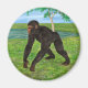 Renderização digital 3D de um chimpanzé grande em um fundo de paisagem de verão