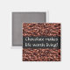 Este ímã foi criado com o amante do chocolate em mente! Design apresenta um campo de batatas fritas de chocolate. Há uma faixa preta com texto branco que diz: "Chocolate faz a vida valer a pena!" Este imã novidade em chocolate faz um presente de excelente para o amante do chocolate em sua vida. Quer o doce seja de um amigo, amado ou você mesmo!