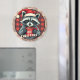 A charming raccoon dressed in a Santa hat holds a steaming mug of cocoa before a red buffalo plaid backdrop, capturing the cozy spirit of a rustic woodland Christmas. The combination of festive red, soft gray fur, and classic flannel pattern brings warmth and nostalgia to the holiday season. With its blend of whimsy and modern country style, this cheerful design perfectly embodies the charm of winter mornings and Christmas gatherings. AI generated artwork.