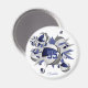 Este divertido ímã de basquete apresenta uma "explosão" de diferentes tamanhos, azuis, cinzas e cestas brancas e cinzas, formas azuis e brancas - um padrão de pequenas bolinhas brancas, a estrela azul - personalizar com o nome do atleta & número de camisa - por katz_d_zynes