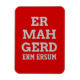 Magneta de design de texto de tipografia elegante e divertida com uma palavra do meme popular de Ermahgerd. Ermahgerd é uma maneira muito desagradável e lisonjeada de dizer "Oh meu Deus!" Personalize com o seu próprio texto e cor de fundo. Use um tradutor remoto como este [http://ermahgerd.jmillerdesign.com/#!/translate] para tornar seu texto personalizado ainda mais bobo!