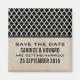 Imã salve a data elegante e moderna de Quatrefoil Chic com um fundo de padrão moroco de tendência, um papel vintage parece fundo e um par de listras de cinza de carvão fino. Esta imã salve a data de na moda é fácil de personalizar com seus detalhes de casamento. Clique em "Personalizar" para encontrar mais opções de personalização.