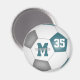 Esta equipe de futebol colorido ímã para rapazes ou raparigas apresenta a imagem de uma bola de futebol realista, com os painéis tipicamente pretos coloridos e cinzas, sobre os quais se pode personalizar facilmente o nome do atleta, o monograma e o número de camisa - de katz_d_zynes