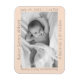 O anúncio moderno e doce de bebês é perfeito para fotos a preto e branco, especialmente, e apresenta um fundo pastel de salmão com fonte de cinza. Cada um dos quatro lados é personalizável para conter um detalhe diferente sobre bebês.