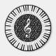Círculo de Piano Keys Design Magnet com notas musicais e G-Clef no centro. A cor de fundo é personalizável.