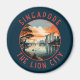 Singapura retro vetor viagem design. Marina Bay é uma área de alto escalão de arranha-céus, hotéis elegantes e shoppings de luxo. É conhecida pela torre da roda-gigante Singapura Flyer Ferris e pelos conservatórios de flores e superárvores coloridas de jardins pela baía.