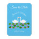 Este incrível ímã de Save the Date para casamento apresenta uma imagem de arte digital de um par de belos cisnes brancos com bicos laranjas virados um para o outro, parecendo que estão se beijando. Abaixo dos cisnes há um grupo de lindas flores de lírio-d'água rosa com centros amarelos e folhas verdes. Um belo design de casamento. Há texto personalizado para que você possa incluir os nomes do casal feliz e a data do casamento.