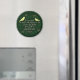 Este ímã verde apresenta a citação "Eu não sou pássaro; e nenhuma rede me ensina: Eu sou um ser humano livre com uma vontade independente." da Jane Eyre, de Charlotte Brontë, cercada por um design floral com folhas verdes, flores rosa pinceladas e pássaros amarelos. *Observe que a Marca d'água do Zazzle que aparece na visualização de zoom não aparecerá no produto impresso final. © Bookish e Maravilha