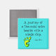 Uma citação inspiradora do filósofo e sábio taoista, Lau Tzu, que diz: "Uma jornada de mil milhas começa com um passo de solteiro." Inclui uma imagem de uma pegada legal em verde limão com uma sombra de queda. O fundo é uma textura vintage desbotada.