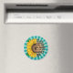 Bonito mão desenhou girassol amarelo com fundo mágico. Uma citação inspiracional de arte colorida. Retro cores.