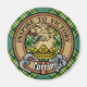 Crachá de crista de leão Clan Currie cercado por uma correia e fivela sobre fundo tartano. Custom Text.