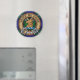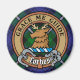 Crachá da crista Clan Forbes rodeado por uma correia e fivela sobre fundo tartano. Custom Text.