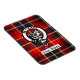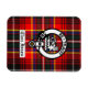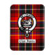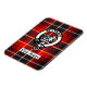 Magnet com crachá escocês de clã Innes crest e texto sobre fundo tartano