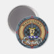Crachá da crista Clan MacKay rodeado por uma correia e fivela sobre fundo azul-tartano. Custom Text.