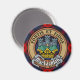 Crachá da crista Clan MacLachlan cercado por uma correia e fivela sobre fundo tartano. Custom Text.