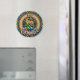 Crachá da crista Clan Scott rodeado por uma correia e fivela sobre fundo de tartã verde. Texto personalizado.