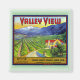 Etiqueta de caixa de fruta Vintage de Claremont, Los Angeles, Califórnia. Montanhas, pomares laranja e limão, vale e água à distância e uma bela casa ao estilo espanhol. O Valley View é colorido, vibrante e único.