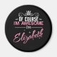 Claro que sou incrível, sou Elizabeth, em sans brancos e cor-de-rosa misturados e letras cursivas com bordos brancos de rolagem e cortou uma coroa branca. O nome é acentuado com estrelas brancas.