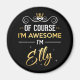 É claro que sou incrível, sou Elly, o nome em sans brancos e ouros misturados e letras cursivas com entalhes de rolagem e cortadas com uma coroa. O nome é acentuado com estrelas.