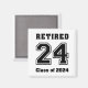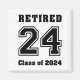 Mostra "RETIRED 24 Class of 2024" em texto colegial de boné de cheio, semelhante ao verso do futebol, hóquei e outros programas desportivos. design legal e divertido para pessoas que se aposentaram em 2024, que gostam de esportes, velhos mais velho que se formaram na faculdade ou na universidade em 2024, e aqueles que se aposentaram.