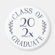 O marinho chic azul no emblema da tipografia branca diz: CLASSE DE [ANO] FORMANDO com as palavras curvando ao redor do ano no meio com folhas botânicas curvas ao longo de cada lado do design circular. Personalize o ano na barra lateral. Faz um presente de formatura divertido. Para ver o design em outros itens, clique no link de coleta "Artes Rocklawn". Copyright ©Claire E. Skinner. Todos os direitos reservados.