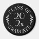 O símbolo gráfico branco sobre a tipografia negra diz: CLASSE DE [ANO] FORMANDO com as palavras curvando ao redor do ano no meio com folhas botânicas curvas ao longo de cada lado da design circular. Personalize o ano na barra lateral. Faz um presente de formatura divertido. Para ver o design em outros itens, clique no link de coleta "Artes Rocklawn". Copyright ©Claire E. Skinner. Todos os direitos reservados.