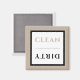 Clean/dirty dishwasher magnet features a simple beige, black and white design. A stylized square medallion and modern typography in a simple neutral color palette.