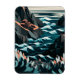 Coastal Energy: This vibrant flat vector illustration captures the dynamic beauty of a rocky beach from an overhead perspective. Dark blue and orange tones bring life to the scene as waves crash onto the shore, creating a captivating contrast. Geometric shapes add depth, while detailed textures on rocks and plants bring a natural feel to this stylized artwork. The minimalistic design emphasizes movement and energy, making it a perfect piece for those looking to add a bold and modern coastal vibe to their collection.