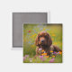 Este ímã apresenta um spaniel marrom giro em um campo de flores silvestres.