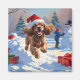 Imã Cocker Spaniel correndo em neve com chapéu de Nata