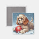 Imã Cocker Spaniel Puppy Descansa na Neve com uma bola