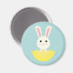 Design bonito, perfeito para quem ama Páscoa! Ilustração do coelho da Páscoa com um ovo amarelo sobre fundo azul. Compre a roupa e decorações de Páscoas para comemorar esta época do ano.