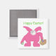 Um coelho rosa e gordo está coletando Ovos de Páscoa para sua cesta. com