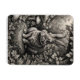 Coelhinho bonito em um jardim de cogumelos com árvores e folhas desenhando.