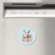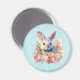 Ímã com imagem em aquarela. Um coelho branco cinza rodeado por uma guirlanda de rosas rosa e pêssego. Para amantes de coelhos e temas de Páscoa e aniversários e celebrações.