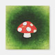 Uma bela ilustração de um cogumelo vermelho visto. O fundo é uma textura verde-meteorizada, a cor que lembra uma floresta verde-luxuosa onde você pode encontrar esses pequenos fungos adoráveis. O cogumelo das ferramentas é um símbolo mágico místico que pode ajudar a adicionar capricho e mistério à sua casa e à sua vida.