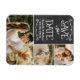 Um ímã de salvar a data divertido e expressivo que apresenta um painel de tipografia em quadro negro ao lado de três espaços para fotos personalizadas — perfeito para mostrar suas fotos de noivado favoritas. A letra com efeito de giz branco e o tipo misto divertido dão a este design um charme quente e artesanal. Nomes, data e todos os painéis de fotos totalmente editáveis.