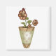 Coleção de Jardins Arte Nacional: Flores vermelhas e beige em um pote ou vaso com uma pequena joaninha branca sentada em uma das flores.