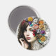 Imã Collage Art | Garota Bonito com flores no cabelo