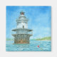 Brilhante blues domina esta impressionante pintura aquosa do Farol de Rochas de Goose ao largo das Ilhas Fox, perto de North Haven e Vinylhaven, Maine. Este magnífico painel retrata um dos mais famosos faróis de vela de ignição da Nova Inglaterra numa tarde de Verão. Este trabalho de arte representa, de forma inegável, o farol de squat em brilhantes brancos ensolarados e cinzentos sombrios pintados com azul. Construído em 1890, a Luz Rochosas de Ganso é um farol que funciona e protege o tráfego de barco de uma traição submarina traiçoeira entre as Ilhas Fox. Goose Rocks Light no High Tide recria a sensação de um dia quente de verão na costa da Nova Inglaterra.