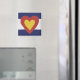 Mostre seu amor pelo Colorado com este ímã. Apresentando a bandeira do Colorado, com um centro cardíaco.