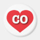 Este ímã apresenta um coração vermelho vibrante contendo as letras maiúsculas, brancas e em negrito CO, a abreviação oficial para Colorado, o estado centenário.